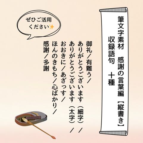 書道家が書いた「筆文字素材【感謝の言葉編(縦書き】」にご興味をお持ちいただき、ありがとうございます。